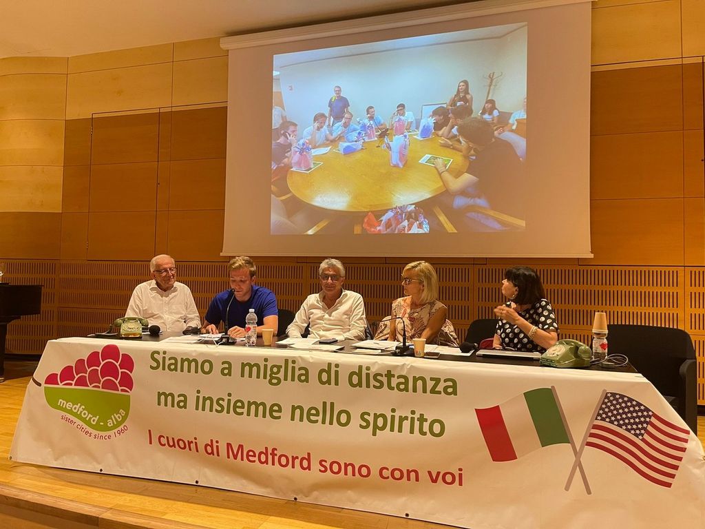 Reciproco è l'impegno a mantenere viva l'amicizia tra le due città, rinnovato dai due sindaci Bo e Sparacino, mentre le due presidentesse si sono soffermate sullo striscione esposto in sala ad Alba, dopo essere stato appeso alla facciata del municipio albese, donato da Medford nella primavera del 2020, agli inizi della pandemia: “Siamo a miglia di distanza, ma insieme nello spirito. I cuori di Medford sono con voi”.