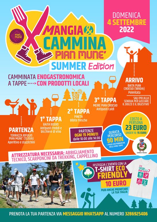 Prenotazioni via whatsapp al numero 328 6925406 oppure via mail all’indirizzo info@pianmune.it