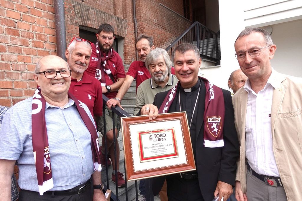 A margine della cerimonia, c’è stato tempo per uno scambio di omaggi. Dapprima il sindaco di Bra, Gianni Fogliato, ha donato al pastore della Diocesi torinese ed al rettore del Santuario una stampa della città e poi è toccato alla delegazione del Toro Club Bra-Carmagnola consegnare a monsignor Repole ed a monsignor Trucco, rispettivamente, le tessere n. 1 e n. 2 del Club, insieme ad una sciarpa dei colori del Torino, di cui entrambi sono tifosi.