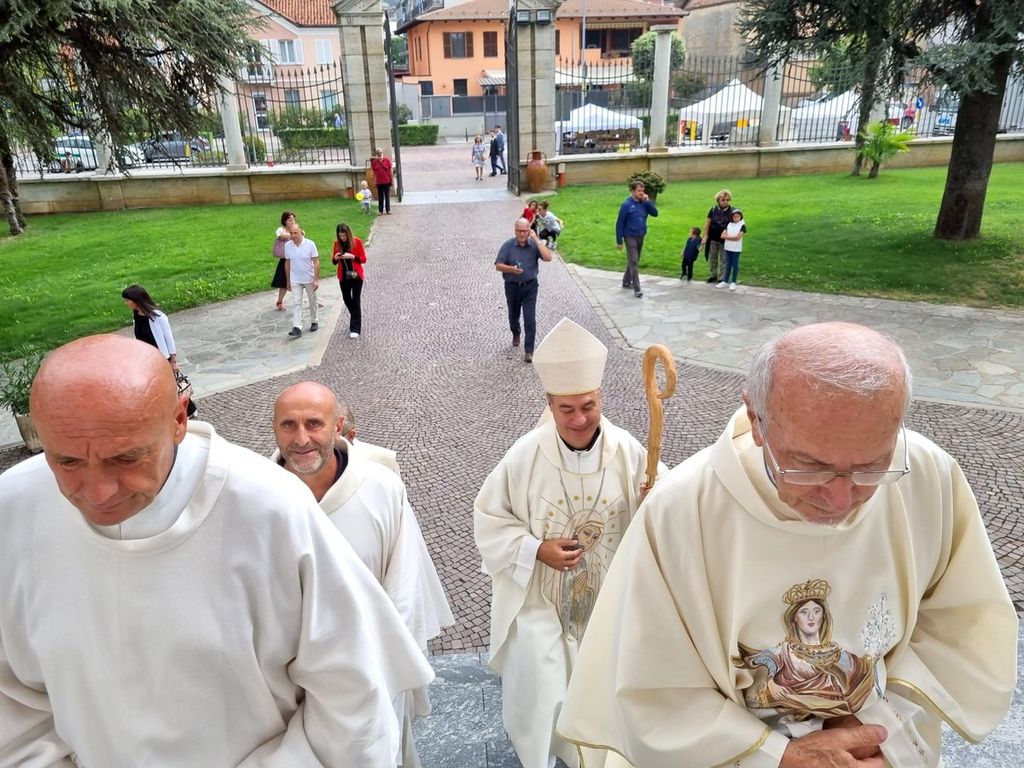 Santuario gremito per il pontificale dell’arcivescovo di Torino, monsignor Roberto Repole, alla presenza del clero locale, tra cui il rettore monsignor Giuseppe Trucco ed i parroci don Gilberto e don Giorgio Garrone.