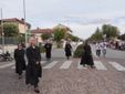 Così la preghiera non si è fermata e la giornata è proseguita nel pomeriggio con l’attesissima processione. Un fiume di gente, autorità, confraternite, associazioni combattentistiche e di volontariato, precedute dai rispettivi labari, hanno accompagnato la sacra effigie tra le vie del centro, seguendo il tradizionale itinerario: viale della Madonna dei Fiori, via Umberto I, via Verdi, via Marconi, Vittorio Emanuele II e infine il rientro nel Santuario nuovo.