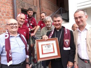 A margine della cerimonia, c’è stato tempo per uno scambio di omaggi. Dapprima il sindaco di Bra, Gianni Fogliato, ha donato al pastore della Diocesi torinese ed al rettore del Santuario una stampa della città e poi è toccato alla delegazione del Toro Club Bra-Carmagnola consegnare a monsignor Repole ed a monsignor Trucco, rispettivamente, le tessere n. 1 e n. 2 del Club, insieme ad una sciarpa dei colori del Torino, di cui entrambi sono tifosi.