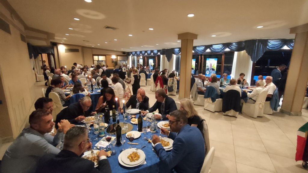 “Cari amici, mi spiace molto non poter essere questa sera in mezzo a voi ma ho dovuto partecipare alla votazione del “Decreto Aiuti” al fine di poter garantire che questo venisse approvato. In un momento così difficile e importante, ho dovuto partecipare e dare mia fiducia ad una serie di aiuti a favore di imprese e cittadini italiani”.