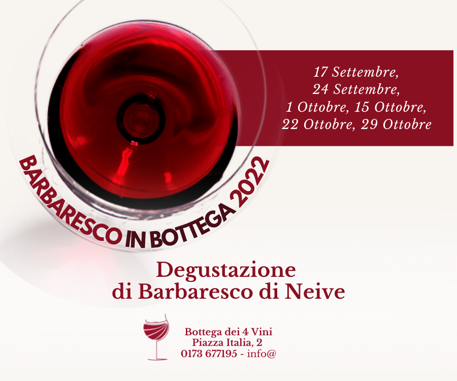 Per info: "Bottega dei 4 Vini" piazza Italia 2, Neive (CN) - 0173/617195