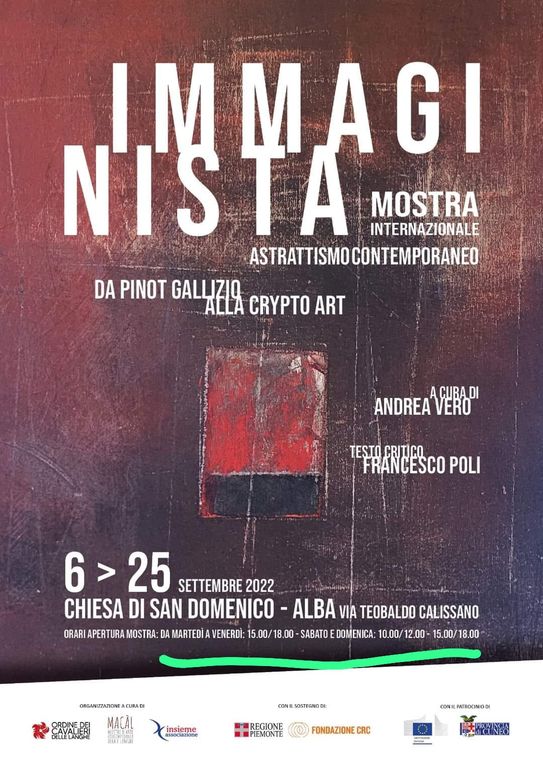 Sarà questo l’ultimo weekend utile per visitare la mostra internazionale di astrattismo contemporaneo intitolata “IMMAGINISTA 2022” nell’antica chiesa di San Domenico in via Teobaldo Calissano ad Alba.