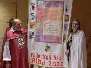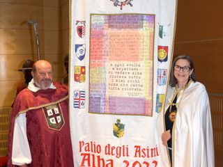 Tra i presenti non poteva mancare Margherita Fenoglio, figlia dello scrittore e già presidente del Centro Studi dedicato all’opera del padre, che ha ricevuto dalle mani del presidente sensibile il riconoscimento di "Amico della Giostra" conferito annualmente dal sodalizio. Per lei, visibilmente emozionata, l’omaggio di un’immagine d’antan recuperata dagli archivi della Giostra, dall’anno in cui interpretò la figura della Signora del Palio.