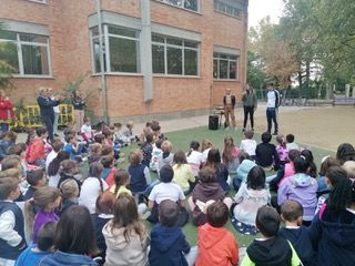 Dal suo desiderio di rivedere le proprie maestre, essendo lui ex alunno della scuola, è nata l’idea di fargli incontrare i bambini delle classi seconde, terze, quarte e quinte.