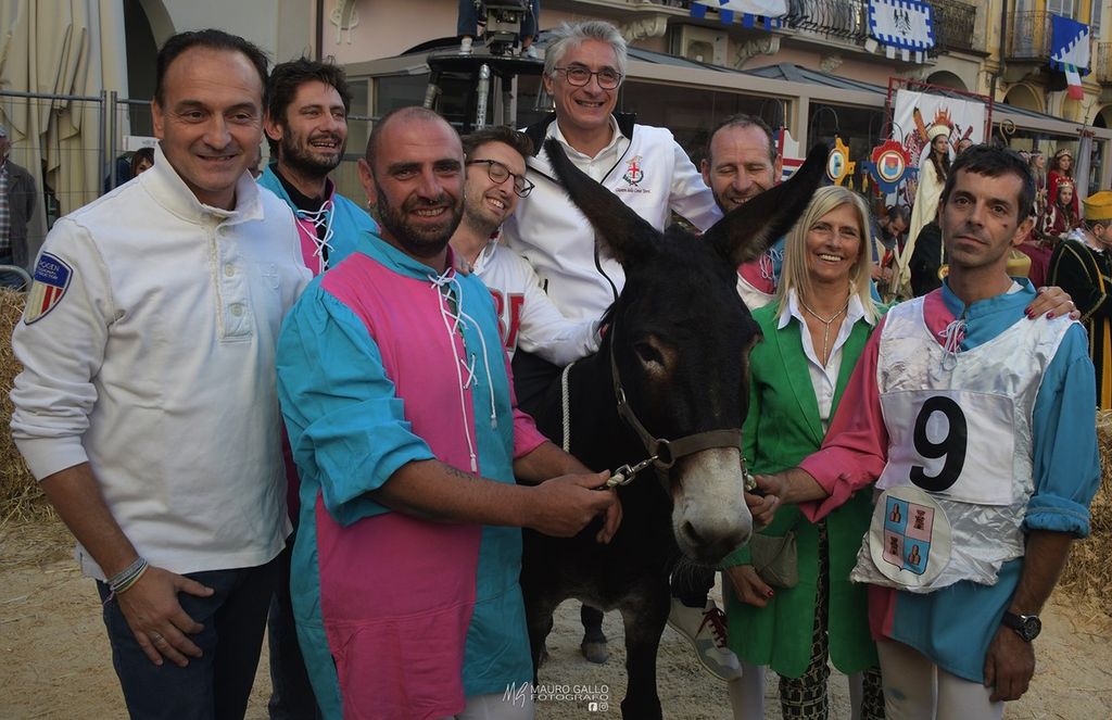 Una vittoria vissuta in modo particolare: «Quando abbiamo vinto io ero nella parte dietro al grande monitor e indossavo ancora i vestiti della sfilata, a un certo punto mi sono saltati tutti addosso con una foga tale che le emozioni sono state fortissime. Ricorderò la vittoria anche per questo episodio. Dopo aver festeggiato nell’arena, ci siamo diretti verso piazza Michele Ferrero passando da via Maestra, dove c’è stato un vero e proprio bagno di folla dove ho constatato che c’è voglia di stare insieme, di divertirsi, di festeggiare. Il regalo degli sbandieratori del Gruppo Cento Torri, che ci hanno accompagnati nel nostro tragitto, è stato molto gradito. Per questa sorpresa ringrazio tutti e in particolare Sergio Destefanis. Abbiamo fatto le foto presso la nuova scultura in piazza e poi abbiamo continuato i festeggiamenti nel nostro quartier generale di piazza San Giovanni».