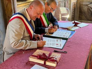 La città di Bra e il comune francese di Tourrettes-sur-Loup sono ora legati da un Patto di Amicizia. Dopo il via libera unanime del Consiglio comunale della settimana scorsa, sabato 1° ottobre si è avuta infatti a Palazzo Mathis la firma ufficiale da parte dei due primi cittadini accompagnati da una rappresentanza degli amministratori dei rispettivi comuni. È la conclusione di un processo di avvicinamento tra i due comuni avviato nei primi mesi del 2021 grazie allo spunto fornito dalla signora Grazia Gaia, braidese di origine, ma trasferitasi da molti anni nel centro francese.