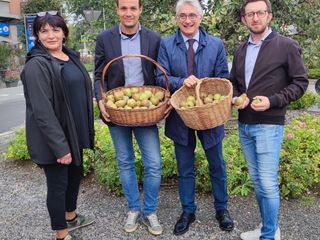 Narrare la biodiversità: prosegue ad Alba il percorso di valorizzazione e sensibilizzazione sull’agroalimentare locale da parte del Comune che, fin dai primi mesi dell’anno, promuove il progetto “Biodiversità Stellata/ Biodiversité Étoilée” finanziato dal programma Interreg V-A Francia-Italia ALCOTRA 2014-2020. Dopo le iniziative “Livertin Experience”, “Picnic in Vigna”, “Narratori della Biodiversità”, “Orti Aperti” e “Il laboratorio della Biodiversità”, lunedì scorso il sindaco Carlo Bo, l’assessore al Turismo Emanuele Bolla, ed il primo cittadino di Guarene Simone Manzone con l’assessore con delega all’Agricoltura Monica Albesano, hanno raccolto alcune pere Madernassa dall’albero piantato nella rotonda centrale di piazza Garibaldi e regalato nel 2011 dal Comune di Guarene alla città di Alba.
