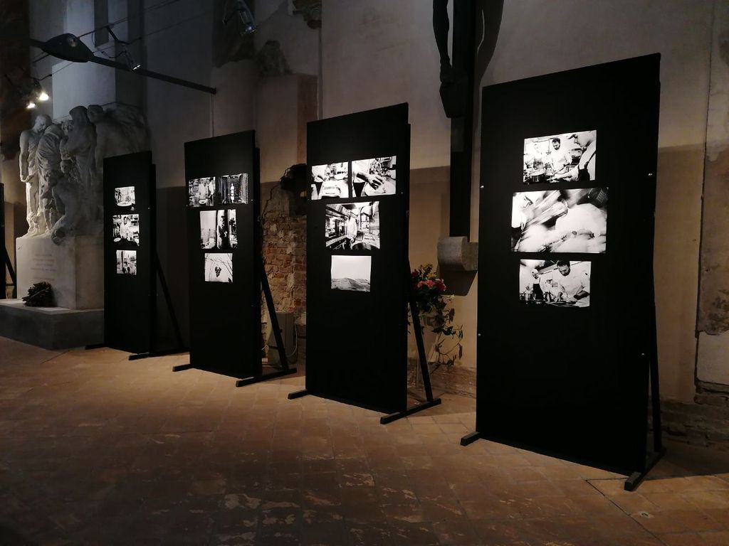 Lo stesso fotografo racconta di aver ricercato il dietro le quinte dinamico, le espressioni da pelle d’oca dei cuochi nel loro ambiente creativo, soffermandosi a scattare continuativamente per 15 minuti semplicemente lo chef e la sua brigata durante un comune servizio. Nella quotidianità di quell’ambiente e lontano dall’etichetta convenzionale della fotografia per il food – perfetta e statica per mostrare il prodotto – hanno avuto origine le 80 foto esposte in questa mostra.