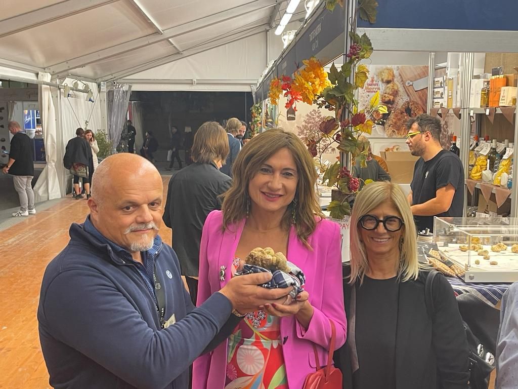 Ad accoglierla in fiera, oltre al Regione Piemonte Alberto Cirio, erano presenti consigliere regionale Paolo Demarchi, il direttore dell’ente fiera Stefano Mosca, la presidente dell’ente fiera Liliana Allena, il vicepresidente dell’ente fiera Marco Scuderi, il giudice del centro nazionale studi tartufo Stefano Cometti e l’assessore albese all’ambiente Lorenzo Barbero.