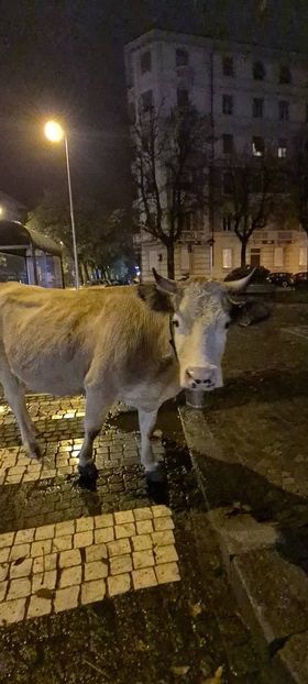 Stanno rimbalzando da una chat all'altra le immagini e i video del bovino che ieri sera 3 novembre, attorno alle 22, si aggirava per Cuneo, nell'area tra corso Kennedy e corso IV Novembre, tra le auto.