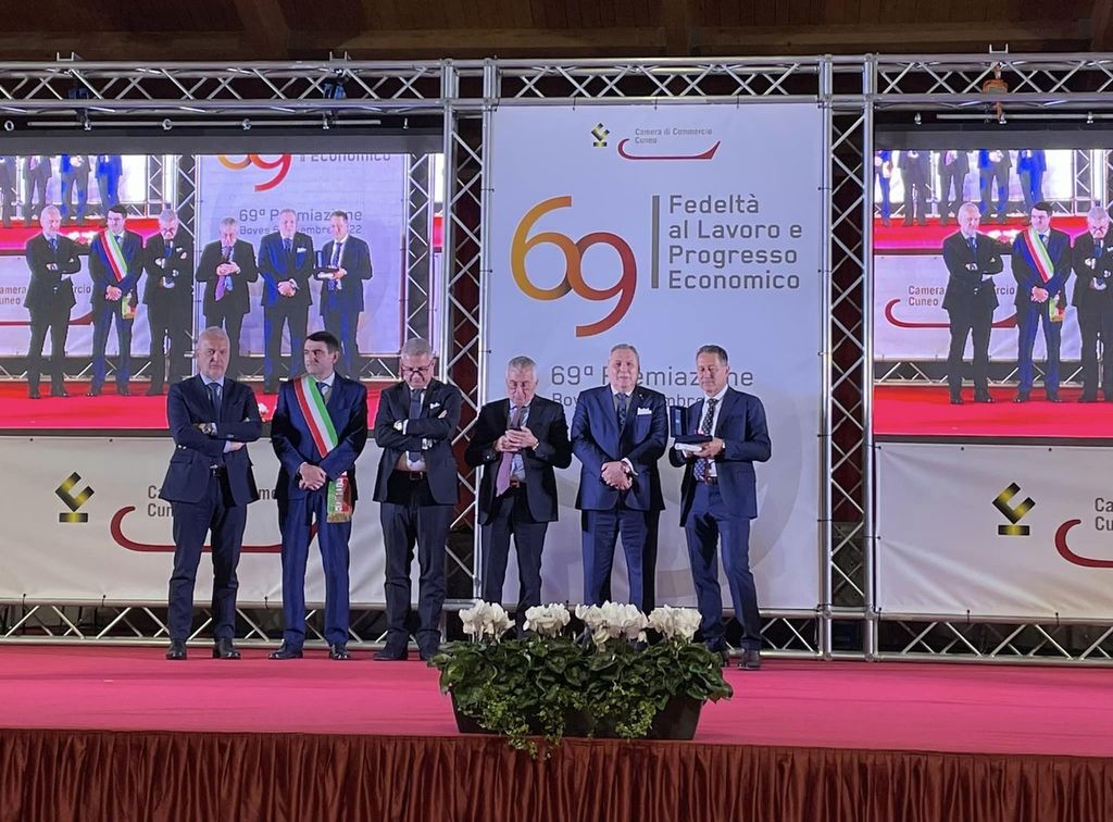 La 𝟲𝟵ª 𝗣𝗿𝗲𝗺𝗶𝗮𝘇𝗶𝗼𝗻𝗲 𝗙𝗲𝗱𝗲𝗹𝘁𝗮̀ 𝗮𝗹 𝗹𝗮𝘃𝗼𝗿𝗼 𝗲 𝗽𝗿𝗼𝗴𝗿𝗲𝘀𝘀𝗼 𝗲𝗰𝗼𝗻𝗼𝗺𝗶𝗰𝗼 ha quindi visto premiati 𝙁𝙚𝙧𝙧𝙪𝙘𝙘𝙞𝙤 𝘿𝙖𝙧𝙙𝙖𝙣𝙚𝙡𝙡𝙤, presidente della Camera di commercio di Cuneo dal febbraio 1993 sino al maggio del 2020, fondatore di EUROCIN Geie “Le Alpi del Mare/Les Alpes de la Mer”, presidente di Unioncamere dal 2009 al 2015: "Un percorso lungo e stimolante, un’esperienza straordinaria da protagonista e ambasciatore del nostro territorio e del nostro Paese". "Per avere aiutato il sistema vitivinicolo cuneese nel suo virtuoso percorso di ricerca della qualità e per il suo impegno nell’associazionismo e nel settore bancario", il riconoscimento è andato anche a 𝘾𝙖𝙧𝙡𝙤 𝘿𝙧𝙤𝙘𝙘𝙤, mentre "per il suo impegno al servizio del settore frutticolo cuneese" è stato premiato 𝙍𝙤𝙢𝙖𝙣𝙤 𝙁𝙞𝙘𝙚𝙩𝙩𝙞. Sigillo d’Oro 2022 anche a Clemente Malvino ("Per le capacità dimostrate nell’ambito imprenditoriale, nelle istituzioni, nel settore bancario e nel sociale") e a Domenico Paschetta ("Per l’importanza strategica del suo operato nell’ambito della cooperazione").