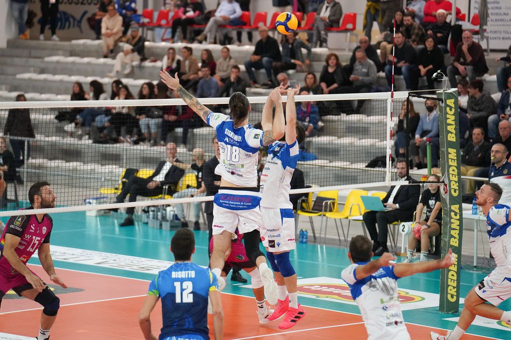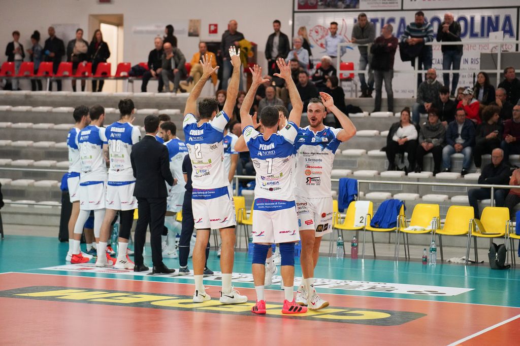 Niente da fare. Anche da Porto Viro la Banca Alpi Marittime Acqua S.Bernardo Cuneo torna senza bottino alcuno. Incredibilmente, la partita finisce ancora 3-1 (28-26/25-15/19-25/25-16) per i padroni di casa. Ma quel che meno convince è che Cuneo abbia in pratica lottato solo nel set d’apertura, pur perdendolo. Gli altri, nel bene o nel male, c’è stata superiorità di una delle due squadre e questo non è un gran/ segnale.