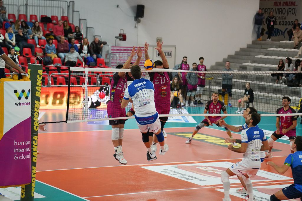 Totalmente da dimenticare la performance nel secondo set, con Chiapello che fatica in attacco (29%), anche se la prestazione più negativa la mette in campo l’opposto Santangelo, anch’esso sotto il 30%. Pesano i 10 errori finali, con il muro ancora sottotono (1), mentre Porto Viro continua ad attaccare con una media positiva sopra il 50%. I parziali fotografano l’andamento del set: 8-5 per la Delta Group, che poi scappa 12-8, 14-9 fino ad un severo 25-15 finale.