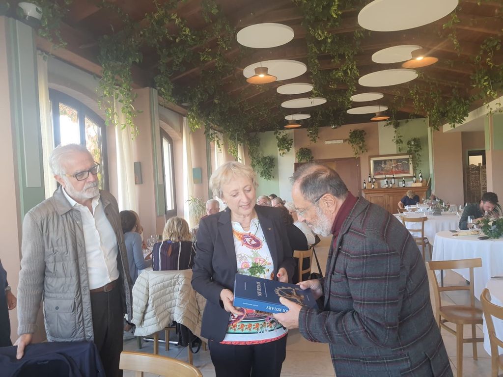 Lunedì 31 ottobre, Piera Arata, il past president Ezio Porro e la socia Viviana Frediani hanno fatto conoscenza con il gruppo del Rotary Club di Salerno Picentia, rappresentato dal presidente Rocco Di Riso e da una nutrita delegazione di soci, in una conviviale a Villa Garassino di Treiso.