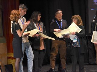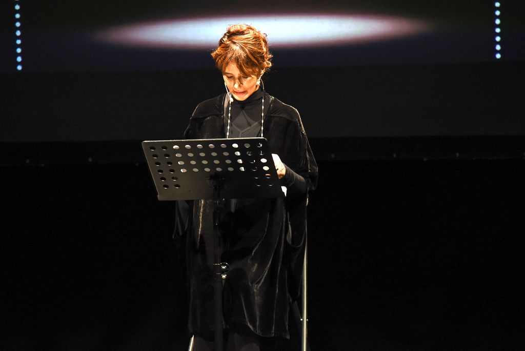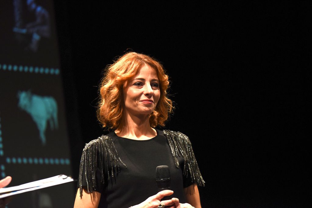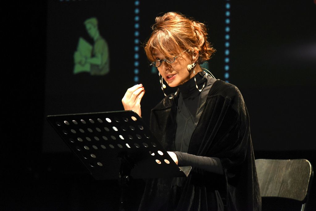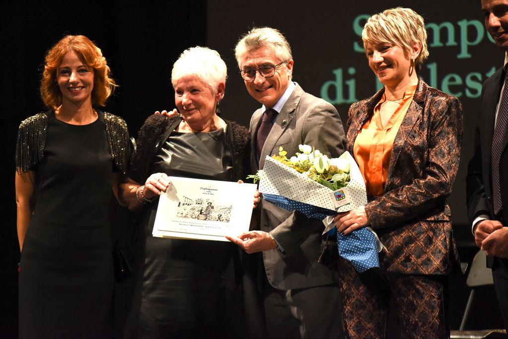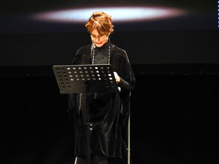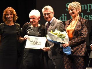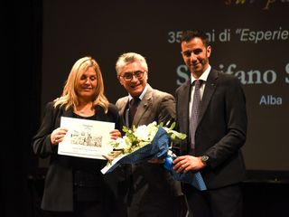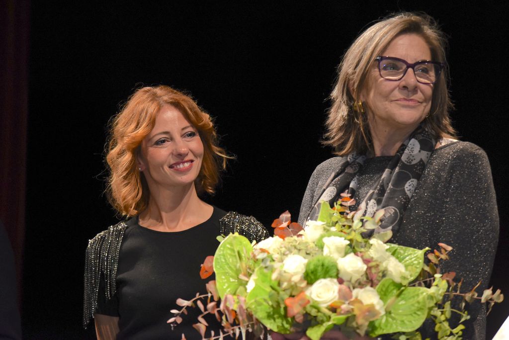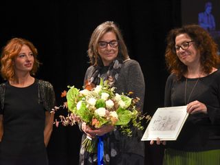 Prima dello spettacolo di Laura Morante, sul palco è salita la figlia di Beppe, Margherita Fenoglio, che è stata omaggiata assieme a Bianca Roagna e Riccardo Corino, rispettivamente direttrice e presidente del Centro Studi Fenoglio, di una targa e di un omaggio floreale.