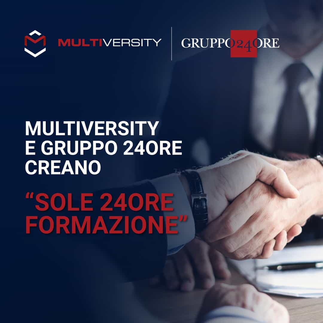 Cresce e si fa ancora più forte la famiglia di Multiversity Group. Dopo la recente acquisizione dell’Università Telematica San Raffaele Roma, la società leader in Italia della formazione on line (ne fanno già parte l’università telematica Pegaso, l’ateneo delle Camere di Commercio Italiane Mercatorum e Aulab) ha infatti ufficializzato un'importante partnership col gruppo editoriale "Il Sole 24Ore".