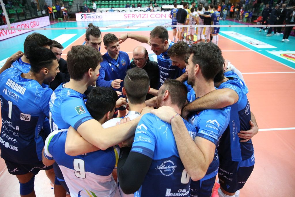 Prima della partita è stato tributato un grande applauso a Samuele Papi, oggi nello staff della squadra friulana ma indimenticato protagonista della Cuneo acchiappa trofei negli anni '90.