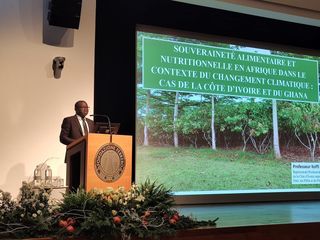 L’ultimo degli ospiti a intervenire è Koffi Adjoumani, vicerappresentante Permanente dell'Ambasciatore della Costa d'Avorio. Nel suo intervento riprende e sostiene le parole del vicedirettore Martina nel delineare la situazione alimentare mondiale, che dipende in buona misura dal ruolo dei conflitti, del cambiamento climatico e degli shock economici, cui, purtroppo, si aggiunge l’intervento della pandemia da Covid-19, che ha prodotto un aggravamento della situazione già difficile. La Costa d’Avorio attua programmi come Progetto Cacao Durable proprio per intervenire sulle cause, contrastando il cambiamento climatico, la deforestazione e la degradazione del suolo, ma anche la piaga del lavoro infantile.
