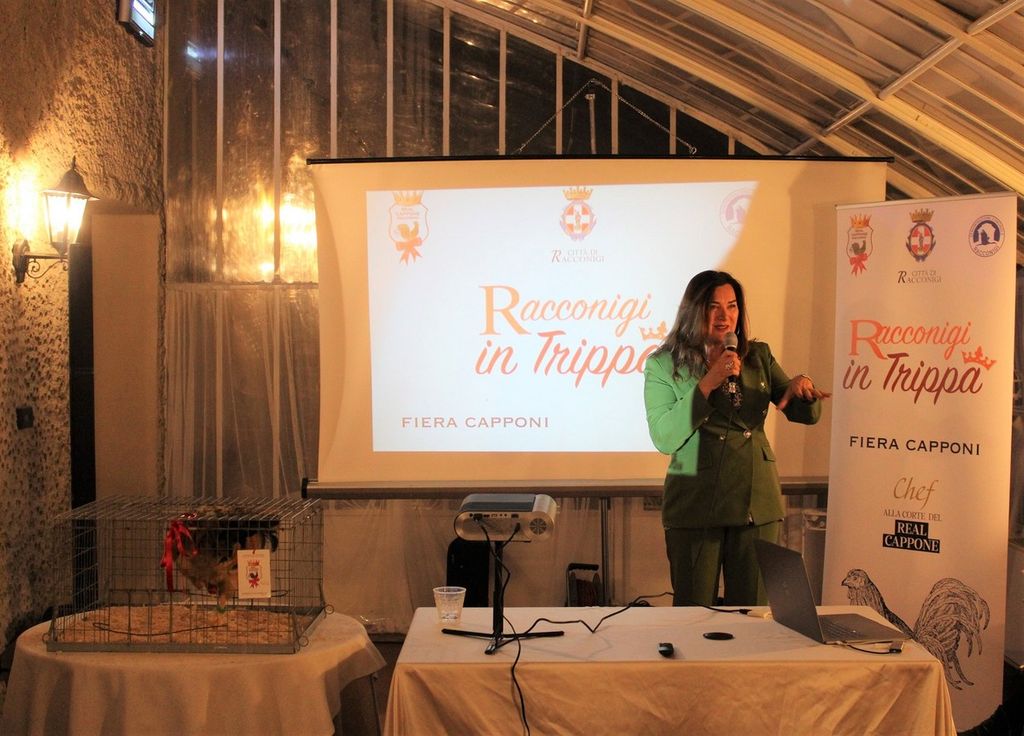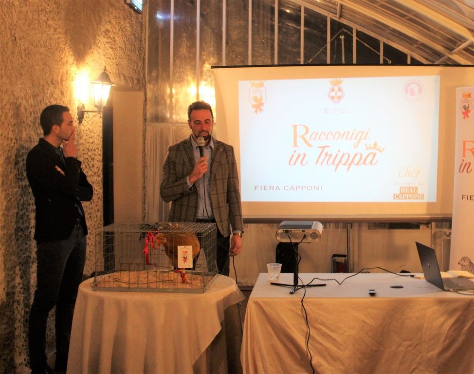 Con il sottofondo di un Real Cappone piuttosto ciarliero, bellissimo esemplare poi battuto all’asta, sono stati raccontati gli sforzi e le soddisfazioni che vedono partire e durare fino al 31 gennaio, la commercializzazione del prodotto nelle macellerie del territorio.