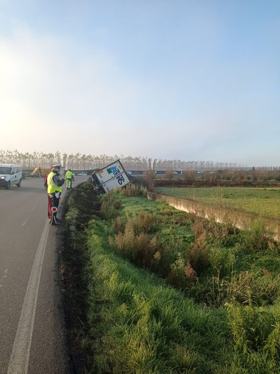 Provinciale 7 chiusa a Pollenzo fino alle 12.30 per un mezzo pesante finito fuori strada