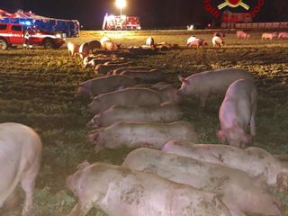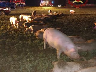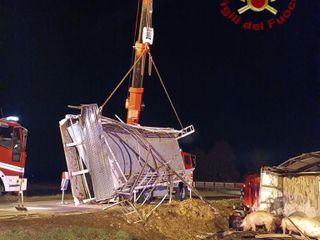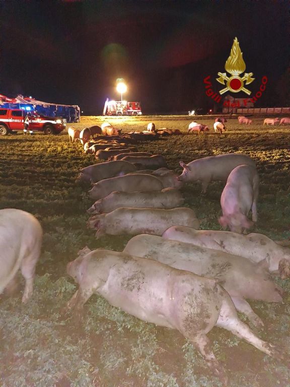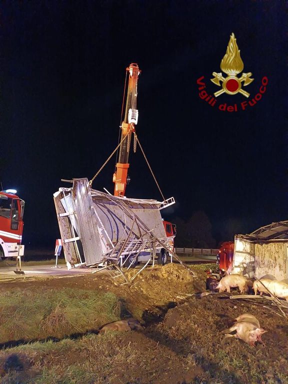 Camion per il trasporto animali si ribalta a Cavallermaggiore: ferito il conducente, morti una trentina di maiali