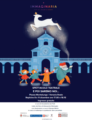 Immaginaria è un progetto di arte pubblica partecipata, ma anche una fiaba natalizia che si sviluppa in ottica di rigenerazione urbana e social design. Il tema di questa seconda edizione "Il valore della tradizione, il sogno dell'integrazione" è declinato nel racconto scritto dall'autore Premio Strega 8+ Alessandro Barbaglia e illustrato dall'artista Giorgia Merlin. Torna così anche quest'anno da vera protagonista Regina, la cerva: animale simbolo di Venaria Reale e del suo territorio (come riporta questo articolo).