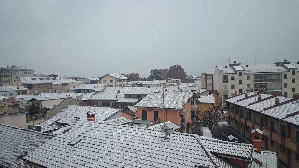 La neve è arrivata nel giorno di Santa Lucia, 13 dicembre. Imbiancati i tetti delle abitazioni, le auto in sosta e gli alberi, come zucchero a velo.