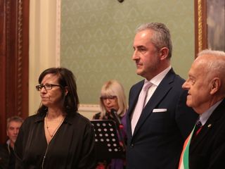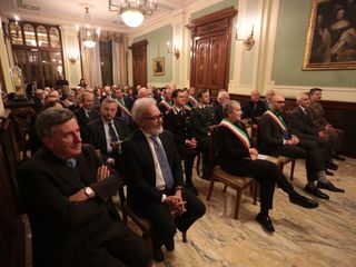 Nuovamente il sindaco di Mondovì Luca Robaldo presente alla consegna della pergamena di Cavaliere della Repubblica a Gianpiero Gazzano, pensionato, impiegato di banca, da sempre attivo nel volontariato.