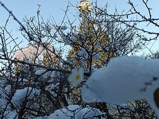 Non c’è di mezzo nessun set cinematografico. Solo fiori, fiori e ancora fiori, che sfidano la neve, con i petali avvolti dal ghiaccio quasi a rinchiuderli in uno scrigno. Nella vastità dei rami spogli del pruneto non rimangono che loro a sfidare il gelo delle notti sottozero, trasmettendo messaggi positivi con una dolcezza incantevole e commovente.