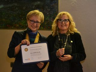 Come ringraziamento per l'impegno profuso nelle attività del club, la presidente del Rotary di Alba, Piera Arata, ha consegnato omaggi a Lucia Ernè, da anni valente fotografa ufficiale del Club, e a Patrizia Boffa, per la collaborazione nel laboratorio al femminile; Francesca Benvenuto, vero e proprio pilastro del corso di Cucito del Laboratorio al femminile, è stata insignita della Paul Harris Fellow, la massima onorificenza rotariana, con la seguente motivazione: “Mettere le proprie competenze e professionalità a servizio degli altri, per migliorare la società in cui viviamo, è ideale fondativo del Rotary. Farlo con impegno, entusiasmo ed empatia è proprio dei migliori rotariani. Per questo motivo il presidente e il consiglio direttivo, all’unanimità, hanno deliberato di assegnare a Francesca Benvenuto la Paul Harris Fellow, la massima onorificenza rotariana, per la dedizione profusa nel Laboratorio al femminile organizzato in questi mesi “.