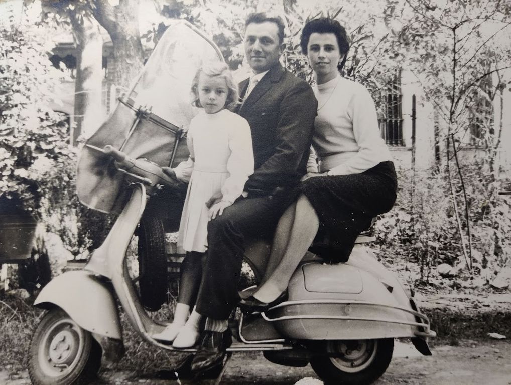 Anche mio padre doveva padroneggiare la Vespa con una certa abilità, altrimenti sarebbero già finiti in un fosso a Verzuolo.