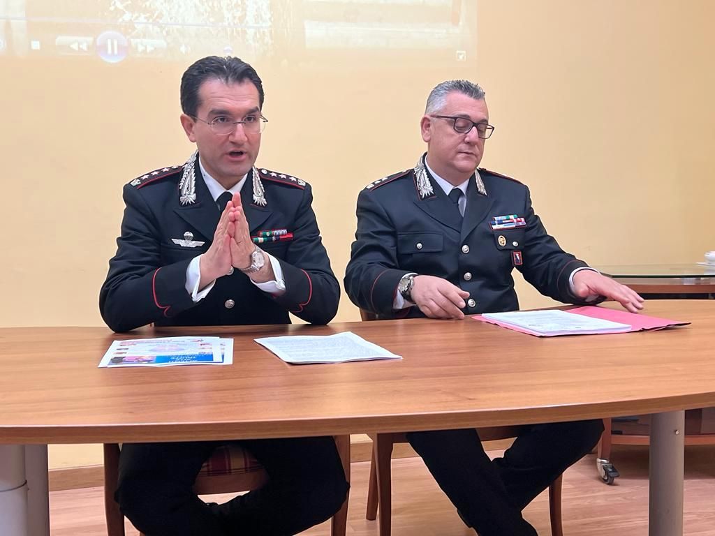 Da sinistra il comandante provinciale dell'Arma dei Carabinieri, colonnello Giuseppe Carubia, e il comandante del Reparto Operativo, tenente colonnello Angelo Gerardi