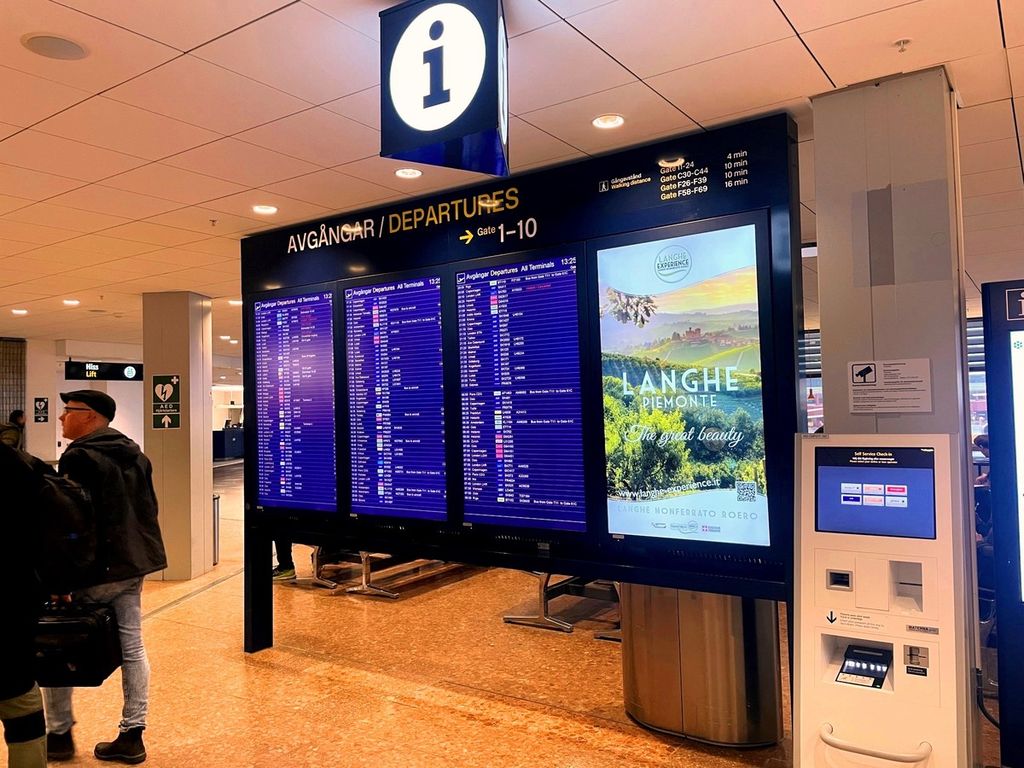 Evocative immagini di paesaggi dai colori cangianti e di degustazioni tra i vigneti sono protagoniste, in questi giorni, all’aeroporto di Stoccolma Stockholm Arlanda Airport, con 135 monitor digitali che trasmettono video emozionali delle nostre colline e, nel corso della prossima settimana, all’aeroporto di Copenaghen, con monitor digitali in posizioni strategiche che, nella settimana di San Valentino e delle “winter holidays”, vedranno una grande affluenza di viaggiatori.