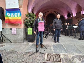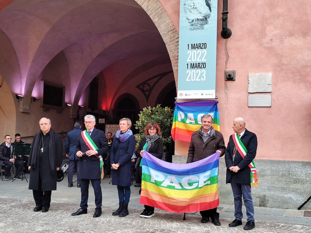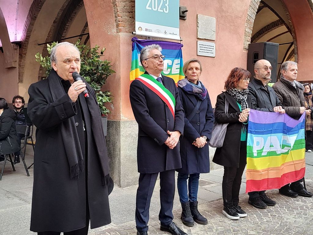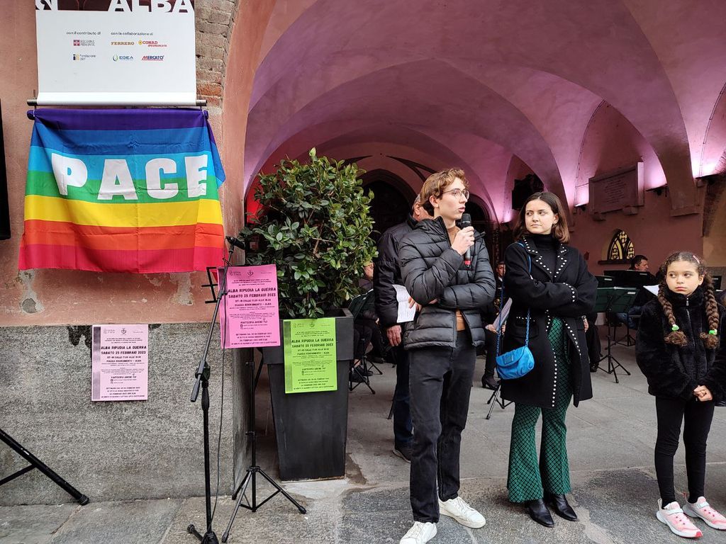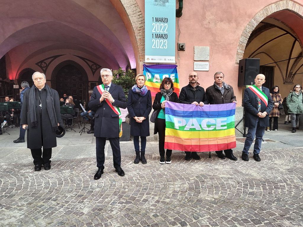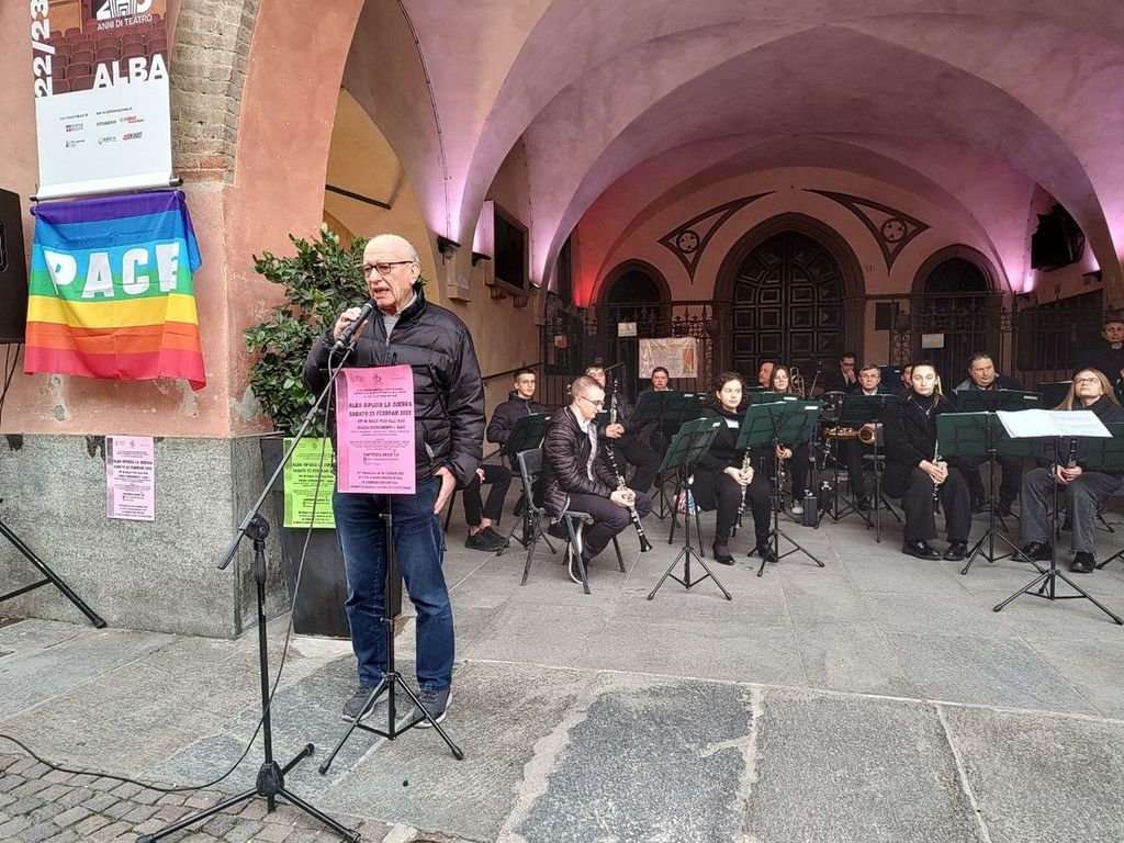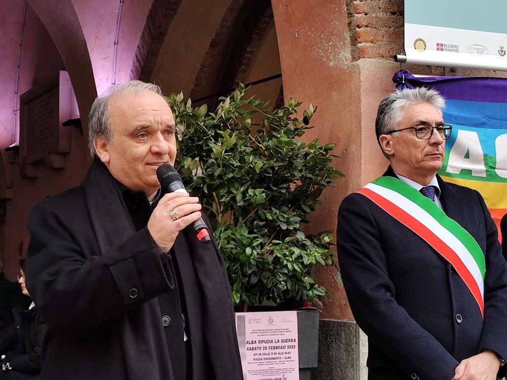 Il Sindaco di Alba Carlo Bo ha aperto gli interventi delle istituzioni: “La guerra in Ucraina è una tragedia umanitaria che ha causato innumerevoli morti e sofferenze tra la popolazione civile. La crisi ebbe inizio nel 2014, quando la Russia annesse la Crimea ucraina. Di certo, c’erano delle avvisaglie: in 24 anni di governo Putin ha procurato altre guerre (…). Dall’inizio del conflitto in Ucraina è passato un anno e l’Occidente ha le proprie responsabilità. Va riconosciuto quanto le democrazie occidentali appaiano drammaticamente fragili”. Infine, l’appello è: “Facciamo tacere le armi e diamo parola alla pace”.