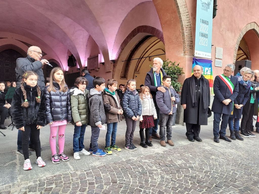 Il Vescovo della Diocesi di Alba Mons. Marco Brunetti: “Questo triste anniversario deve essere l'ultimo”. Decenni di vita pacifica, benessere, aiuto vicendevole sono oggi in pericolo. Secondo il Vescovo la risposta dovrebbe essere nella rinuncia a utilizzare le armi per dissipare i conflitti, piuttosto: “Diamo voce ai popoli, della nostra civiltà giudeo-cristiana che ha saputo portare la vita a vette altissime”. “Sono contento di vedere tanti ragazzi: scusateci – ha continuato –, noi tutti adulti non volevamo più farvi vedere la guerra. Tutti voi potete diventare costruttori autentici di pace”.
