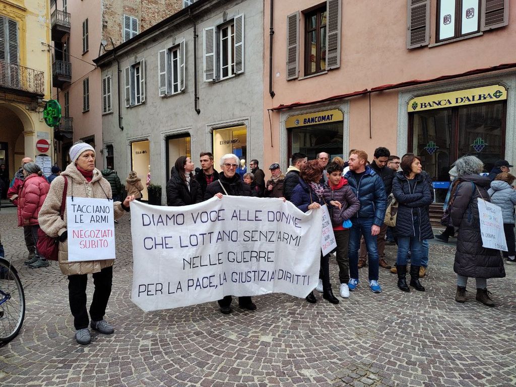 Questo appuntamento si inserisce al termine di una settimana densa di iniziative, a partire dalle riflessioni sulla guerra maturate nelle scuole albesi da alunni e insegnanti, accompagnate venerdì 24 febbraio dai rintocchi delle campane delle parrocchie cittadine in ricordo delle vittime di tutte le guerre e dall’incontronella Chiesa di San Giuseppe dedicato alla solidarietà scaturita ad Alba e nel territorio per portare aiuti alle popolazioni colpite dalla tragedia della guerra in Ucraina. Alle ore 21 di oggi, sabato 25 febbraio, nella Cattedrale di Alba si terrà la Veglia Missionaria di Quaresima di Fraternità orientata a costruire la Pace.