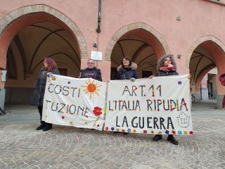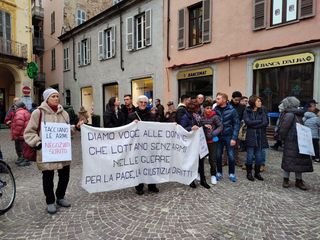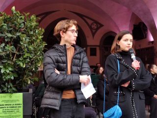 Il sit-in è stato preceduto, alle ore 16.00, dal corteo del movimento pacifista internazionale Donne in nero, in via Vittorio Emanuele II, poi unitesi al resto dei partecipanti – circa 250 in totale – in Piazza Risorgimento. Con Maria Chiara Tropea, le Donne in nero hanno rimarcato la necessità di ridare centralità all’ONU, chiedere la messa al bando di tutte le armi – a cominciare da quelle nucleari – e la riconversione dei corpi di difesa armata in forze di difesa civile non violenta. “Bisogna cambiare mentalità. Noi supportiamo le femministe che si espongono nel contrastare il regime russo con azioni non violente, accogliamo disertori e renitenti alla leva. Loro sono il volto nuovo dell’umanità che cerca pace senza armi. Fuori la guerra dalla Storia!”.