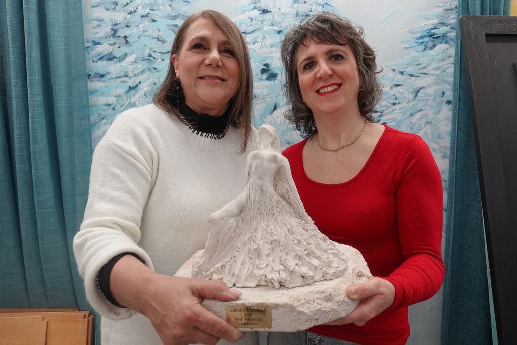 Ringraziando Feny Parasole per questo entusiasmante viaggio nel suo cuore di donna e di artista, voglio mostrarvi in foto la mia preferita tra le sue opere. Si intitola “Libero l’anima” (un nome, un programma) ed è una scultura in gres porcellanato fine refrattario su base di travertino, presentata a Women Art Bra (Wab) nel 2022 e poi esposta alla mostra per la pace della Regione Piemonte. Ca-po-la-vo-ro!