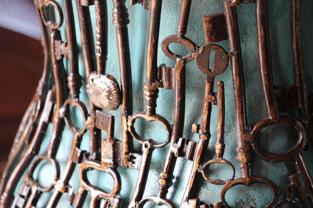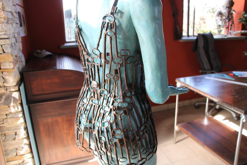 Si tratta di una scultura a tecnica mista alta circa 1 metro e 70. Protagonista una figura femminile, vestita di chiavi.