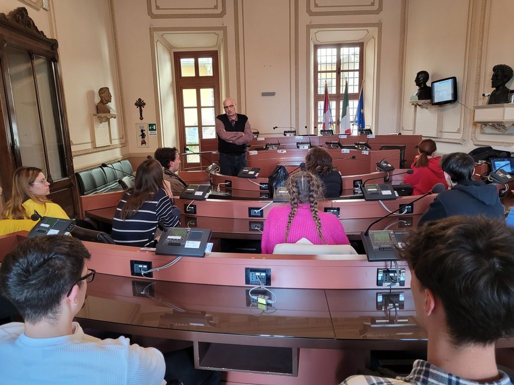Dopo l’accoglienza del sindaco Gianni Fogliato, gli alunni sono stati accompagnati dal dirigente della Ripartizione Affari generali Costanzo Fissore in un tour didattico del palazzo municipale, nel corso del quale ha illustrato ai giovani le modalità operative dei principali organi e uffici del Comune, oltre a fornire loro la possibilità di simulare una votazione del Consiglio comunale.