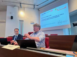 L'intervento di apertura del dibattito è stato quello di Davide Poggi (Professore Dipartimento di Ingegneria dell'Ambiente, del Territorio e delle Infrastrutture Politecnico di Torino) sul tema Cambiamento climatico e disponibilità idrica.