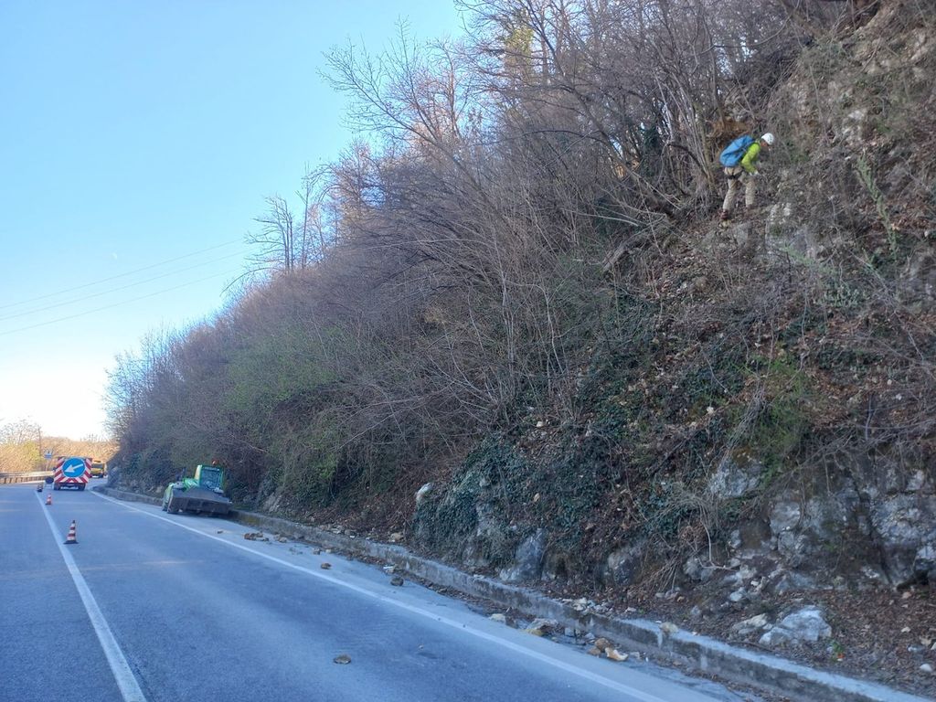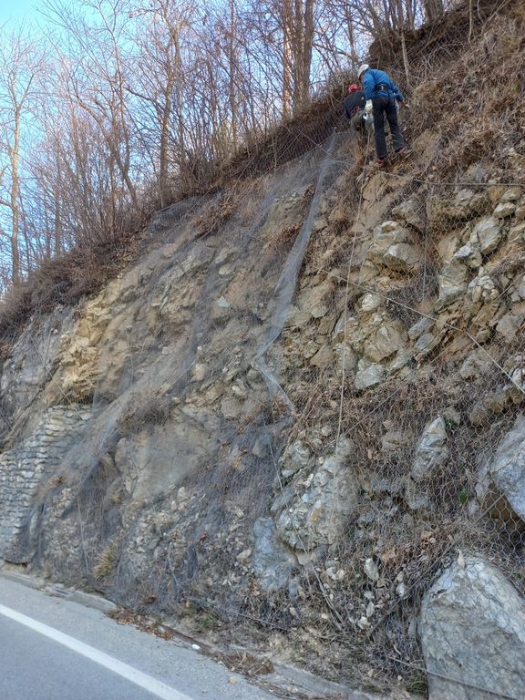 In particolare è stata effettuata l’ispezione delle pendici prossime alle statali con il disgaggio degli ammassi rocciosi instabili e la manutenzione delle reti di protezione già installate in parete.