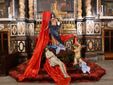 Drappi colorati esaltano la scena di una toccante “Pietà”, incastonata nella meraviglia di un ambiente in stile barocco, illuminato dai ceri disposti in forma di croce nel presbiterio, che saranno accesi dai fedeli in sosta per l’adorazione.