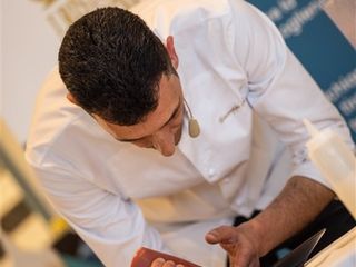 Il famoso pastry chef ha presentato di fronte ad un pubblico di oltre 100 persone una sua deliziosa creazione: “I fiori nella dolce cucina; Crostata al limone e fragole con Nasturzio”.