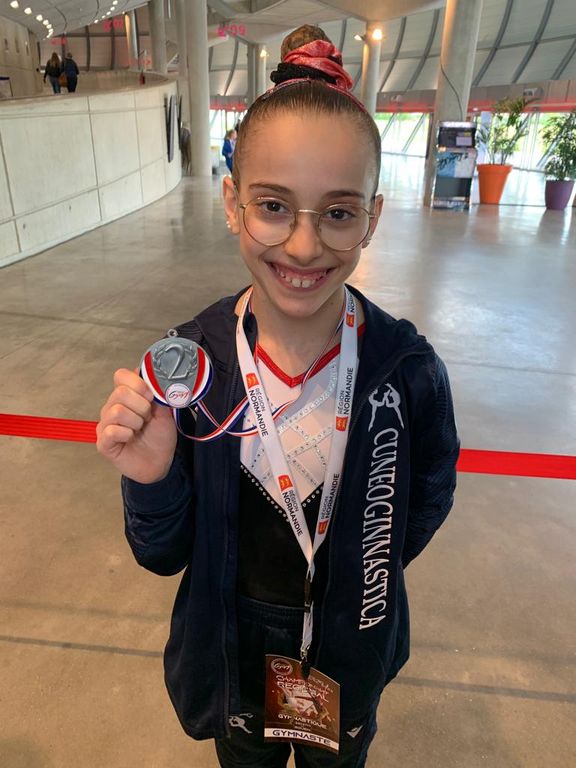 La giovane atleta, classe 2010, cresciuta e tesserata per la ASD. Cuneoginnastica è salita in pedana su tutti e quattro gli attrezzi contribuendo all'ottimo risultato che è valso la medaglia d'argento, un gradino sul podio ed una esperienza indimenticabile.