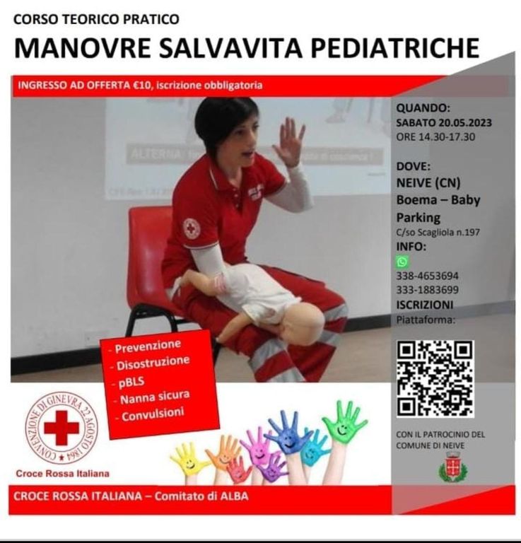 Sabato 20 maggio dalle ore 14.30 alle ore 18.30 presso il baby parking allestito presso la ditta Boema in via Scagliola, sono attesi i neo genitori per imparare ad affrontare l’emergenza dell’occlusione delle vie respiratorie dei neonati, così da imparare le manovre per far espellere il bolo di cibo o un oggetto che possono portare a gravi conseguenze per la vita del figlio. Iscrizione obbligatoria, offerta minima 10 Euro.