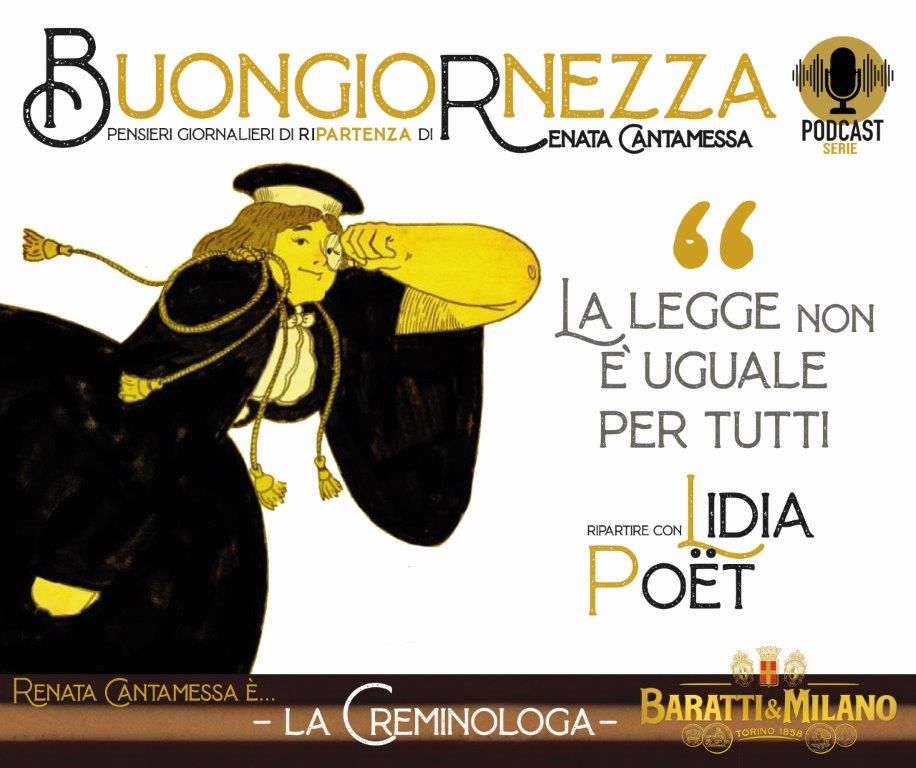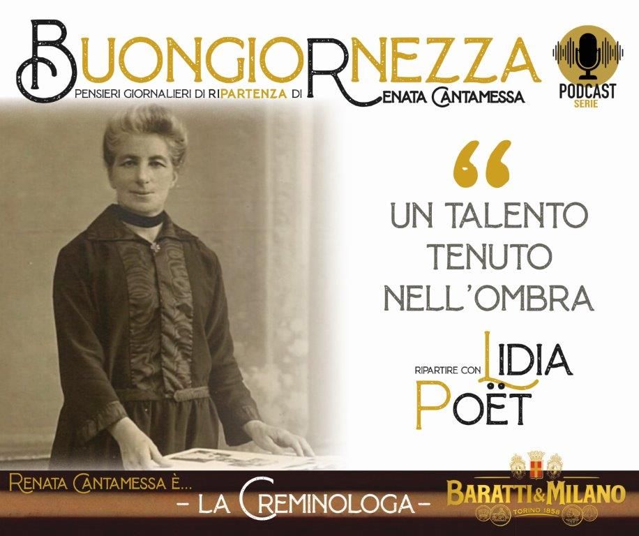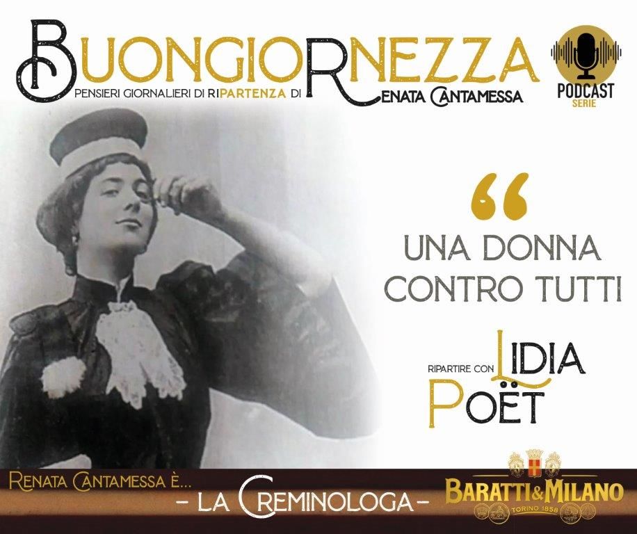 La Buongiornezza di Renata Cantamessa inaugura la sua collection settimanale di 5 podcast (uno per ogni giorno feriale, ma già serviti in successione per favorirne la godibilità completa) con le pillole audio sulla vera storia di Lidia Poët, la prima avvocata d’Italia e pioniera nella lotta per l’emancipazione femminile, recentemente protagonista della miniserie lanciata da Netflix, pesantemente criticata per la sua scarsa adesione ai fatti reali.